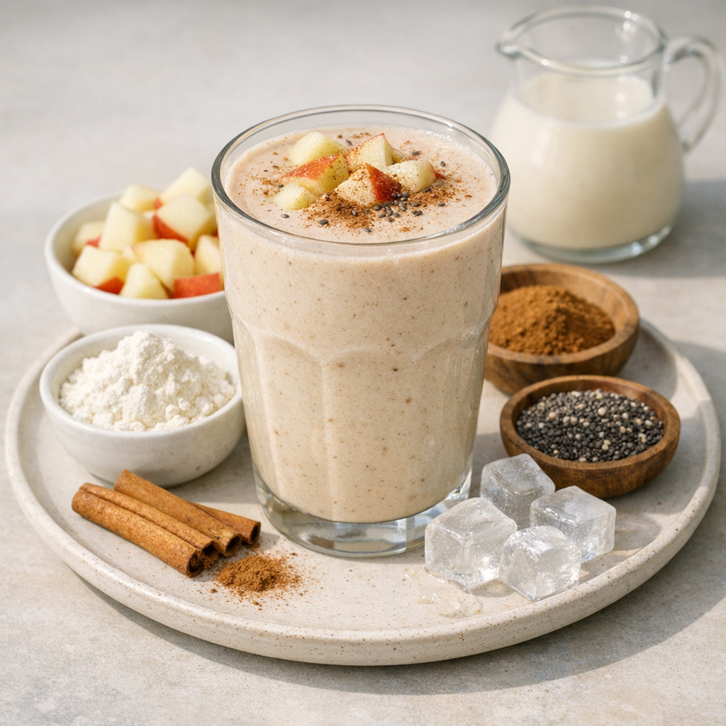 Deze shake brengt frisse appel samen met warme kaneel en een romige basis. Een makkelijk te bereiden ontbijt met een zachte, licht kruidige smaak.