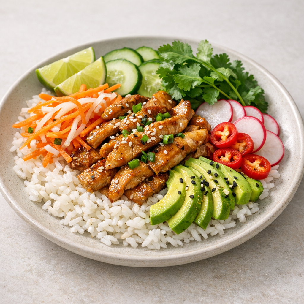 Banh Mi Bowl (Glutenvrije Rijstbowl met Gemarineerd Vlees)