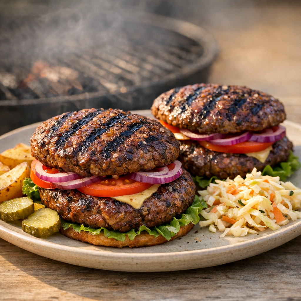 Gegrilde bizonburgers met een volle, hartige smaak. Je krijgt een malse burger die stevig vult en snel klaar is.