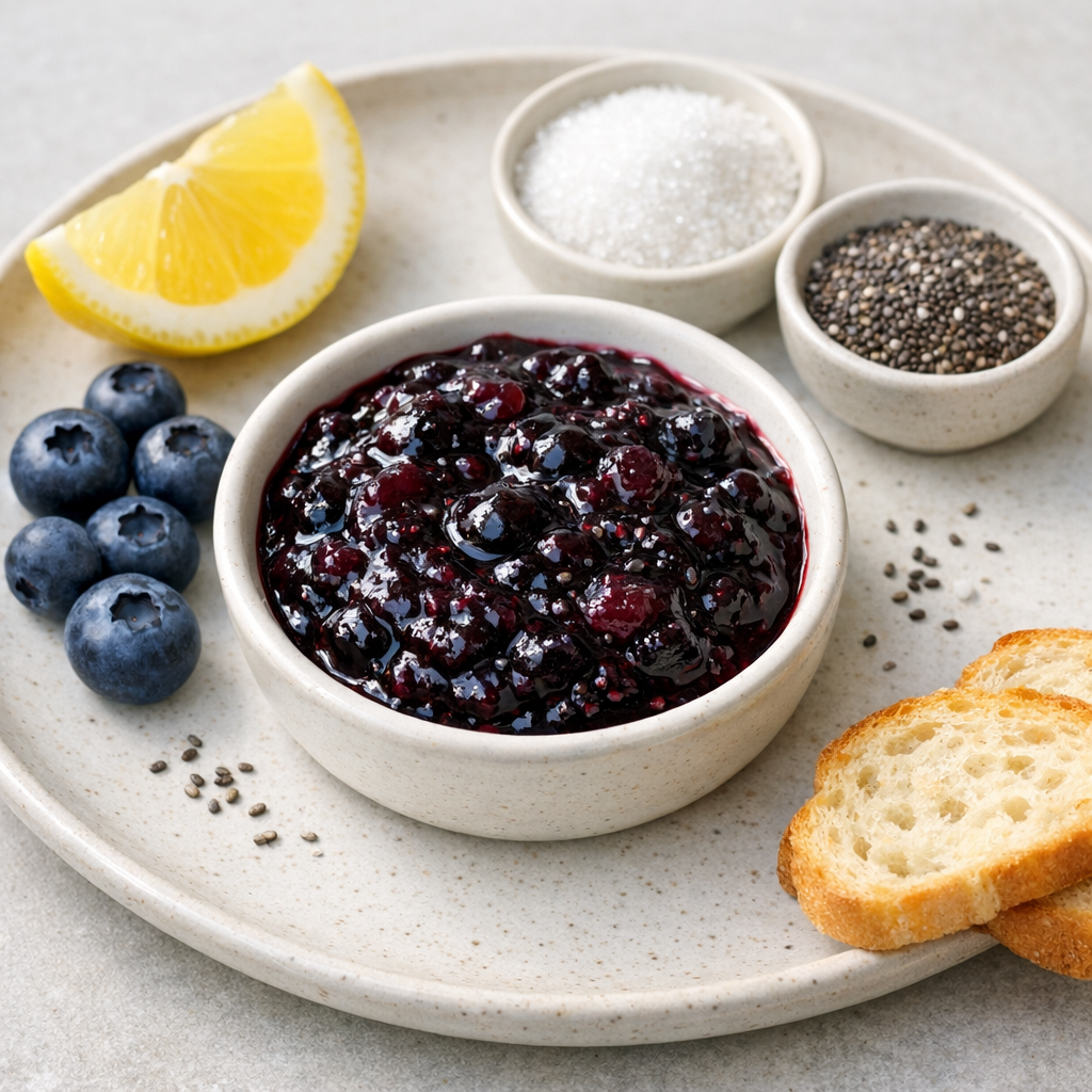 Deze blauwe bessen jam is friszoet van smaak en heeft een zachte textuur. Lekker als broodbeleg of bij dessert.