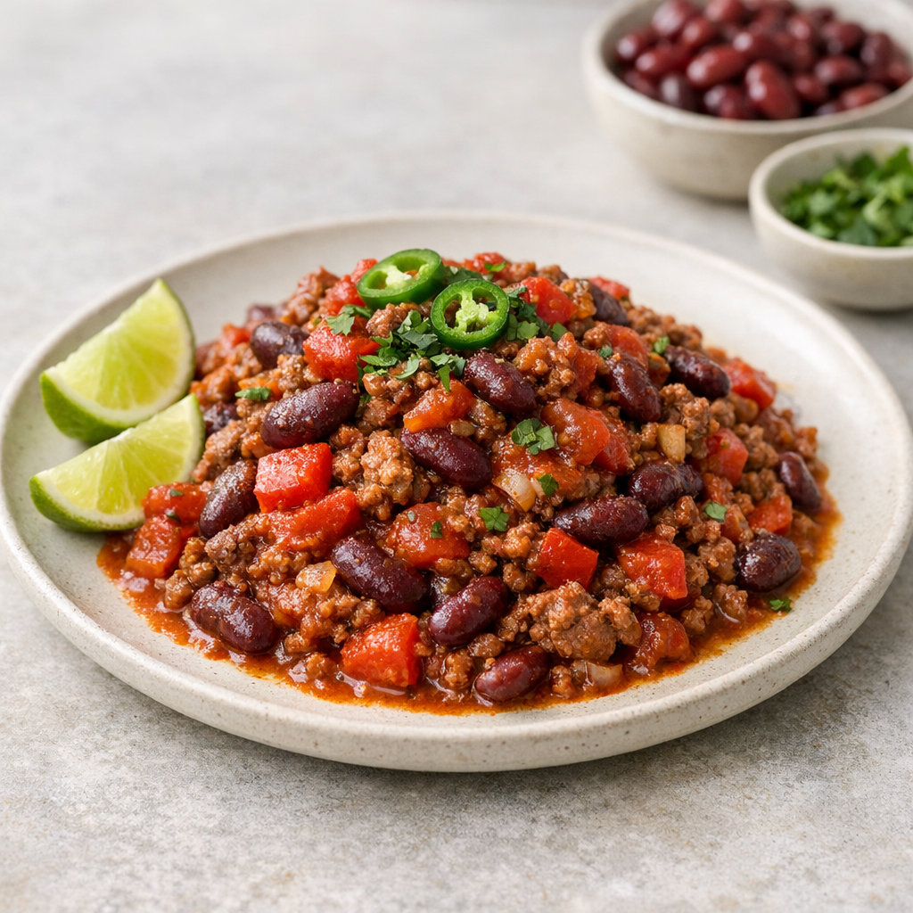 Stevige chili met rundvlees, bonen en een warme, kruidige smaak. Je zet een hartige maaltijd op tafel met heldere, praktische stappen.