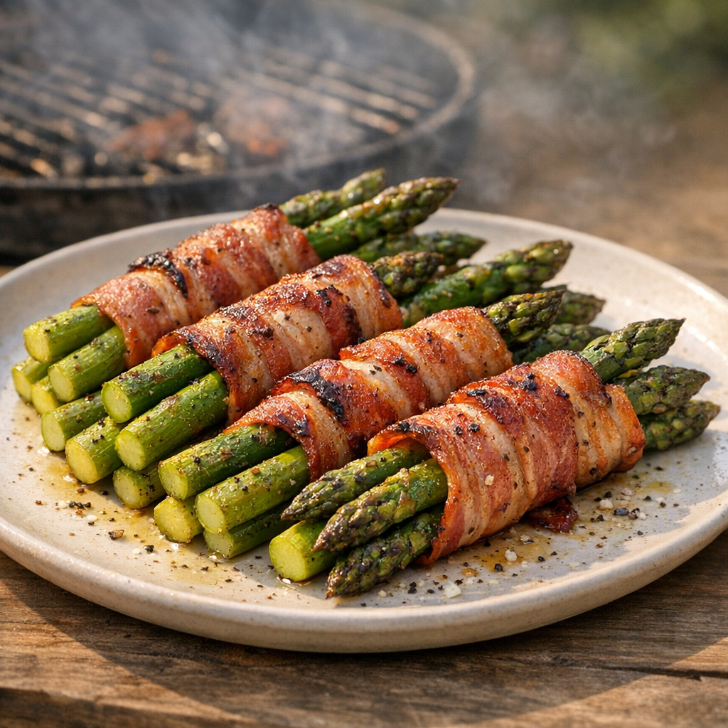 Asperges in spek zijn knapperig gegrild met een zoutige bite. Dit bijgerecht is eenvoudig te maken en combineert goed met andere gerechten.