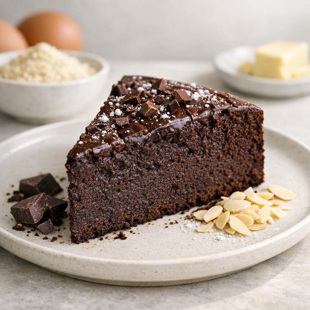 Deze glutenvrije chocoladecake met amandelmeel en pure chocolade is heerlijk zacht en vol van smaak. Perfect om rustig van te genieten bij een kopje koffie of als afsluiter van een maaltijd.