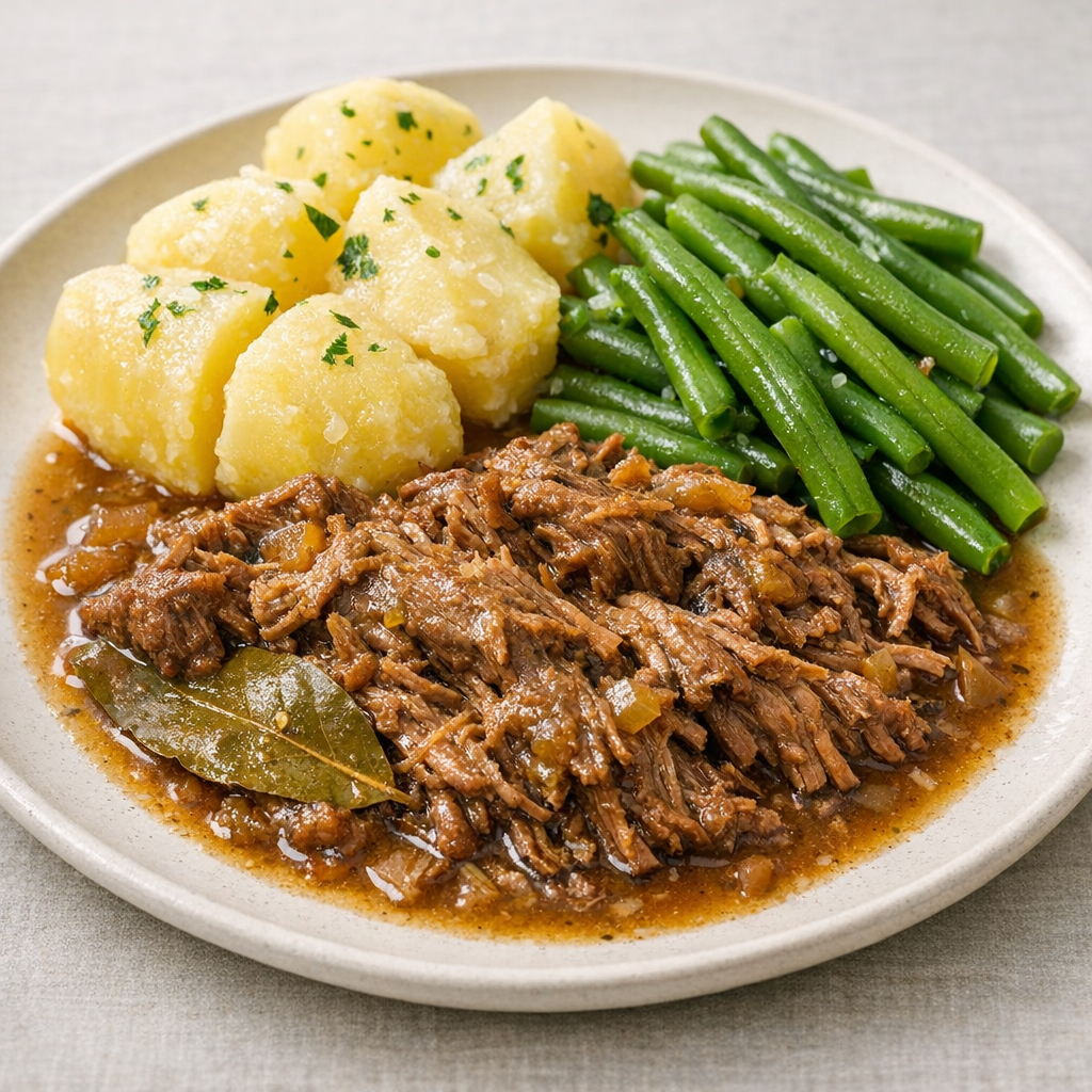 Glutenvrije Draadjesvlees met Gekookte Aardappelen en Sperziebonen