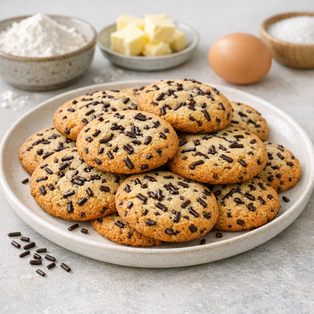 Deze glutenvrije hagelslag koekjes zijn eenvoudig te maken en smaken heerlijk bij de koffie of thee. Ze worden bereid met glutenvrije bloem, plantaardige lactosevrije boter en glutenvrije hagelslag. De koekjes staan snel op tafel en zijn perfect om vooraf te bakken als smakelijke snack.