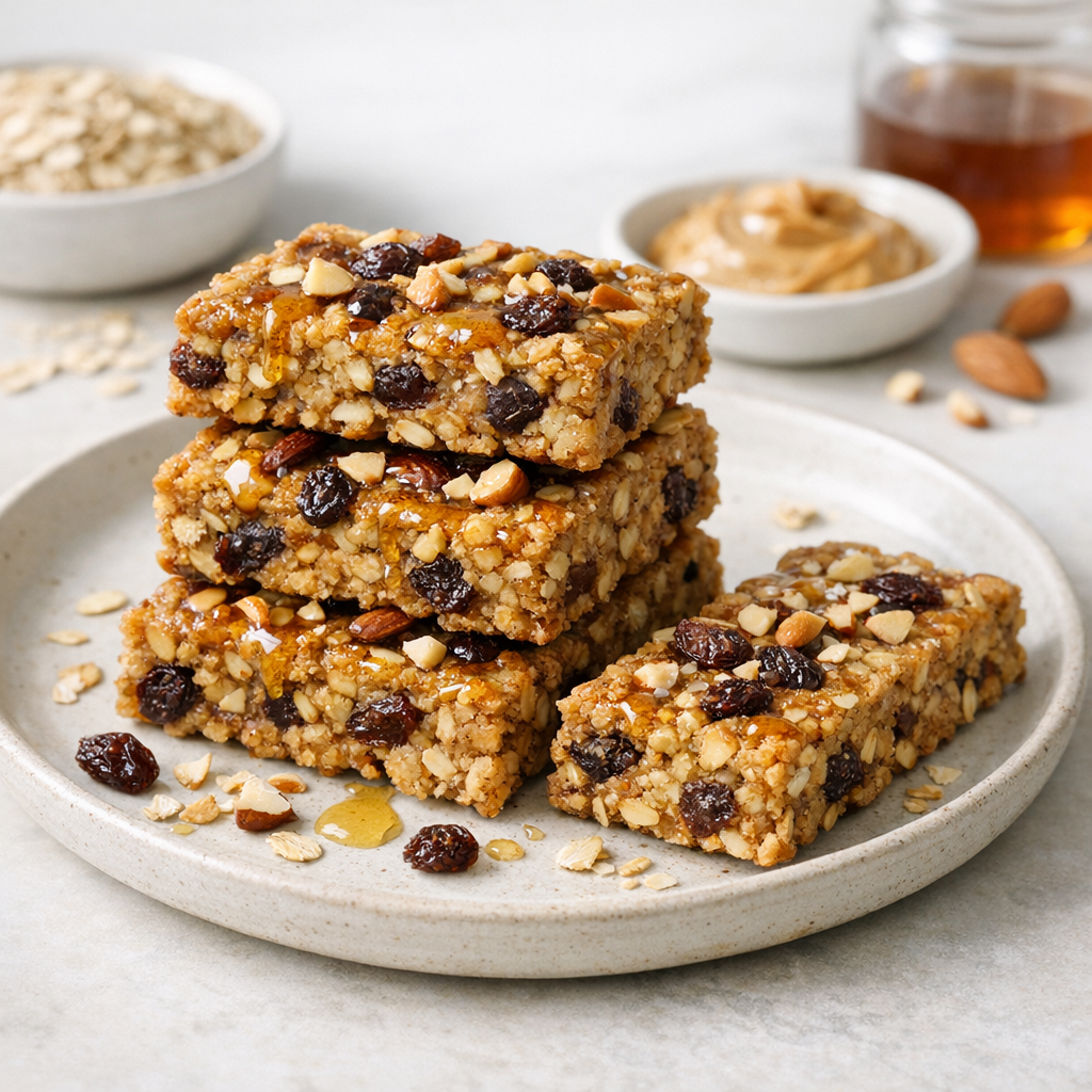 Deze glutenvrije haverrepen met rozijnen en amandelen zijn heerlijk krokant, eenvoudig te bakken en ideaal als voedzaam tussendoortje. Ze hebben een lichte zoete smaak en zijn perfect om mee te nemen of thuis van te genieten.