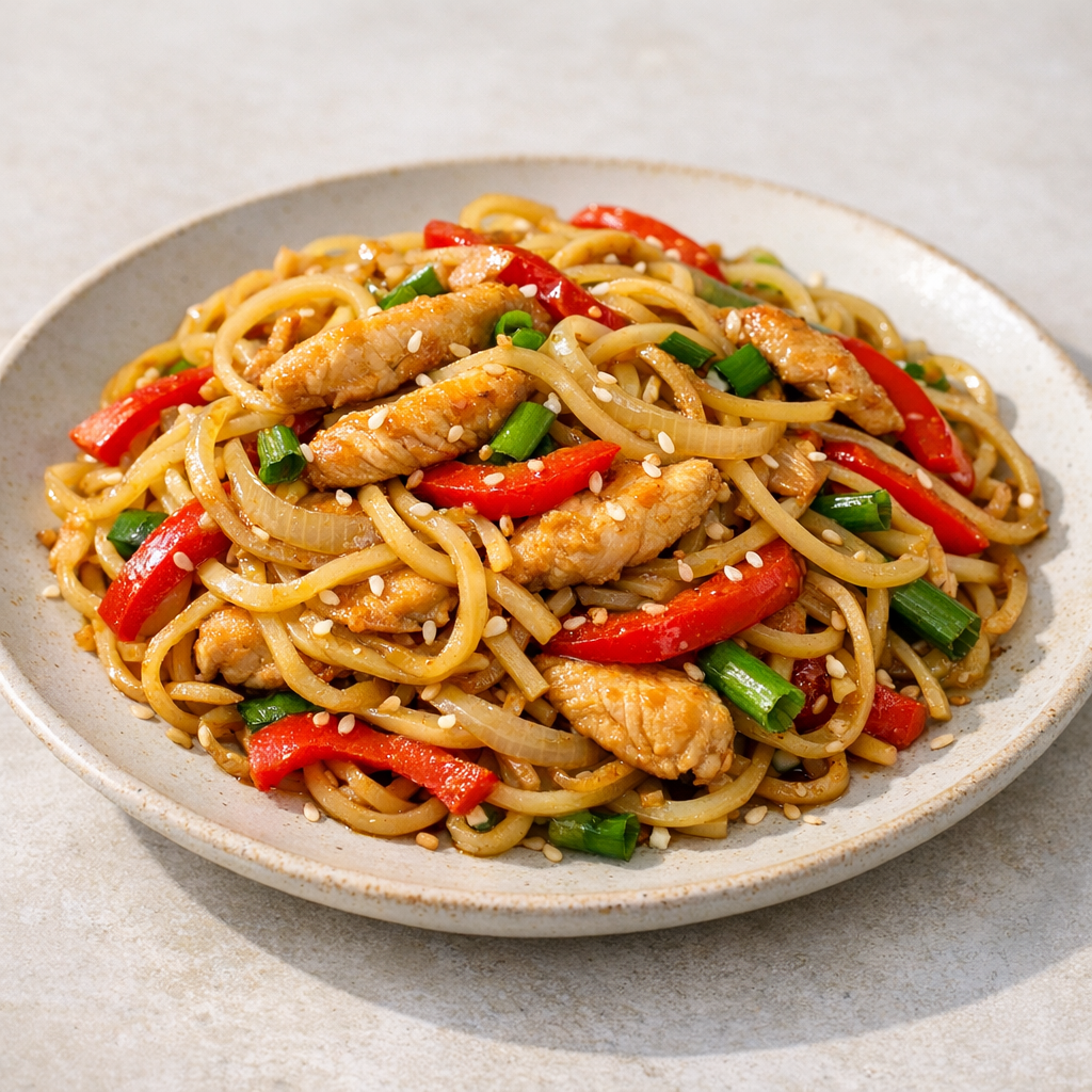In dit gerecht roerbak je kip en verse groenten met een milde saus. De stappen zijn overzichtelijk, waardoor je snel een voedzaam en smakelijk diner op tafel zet.