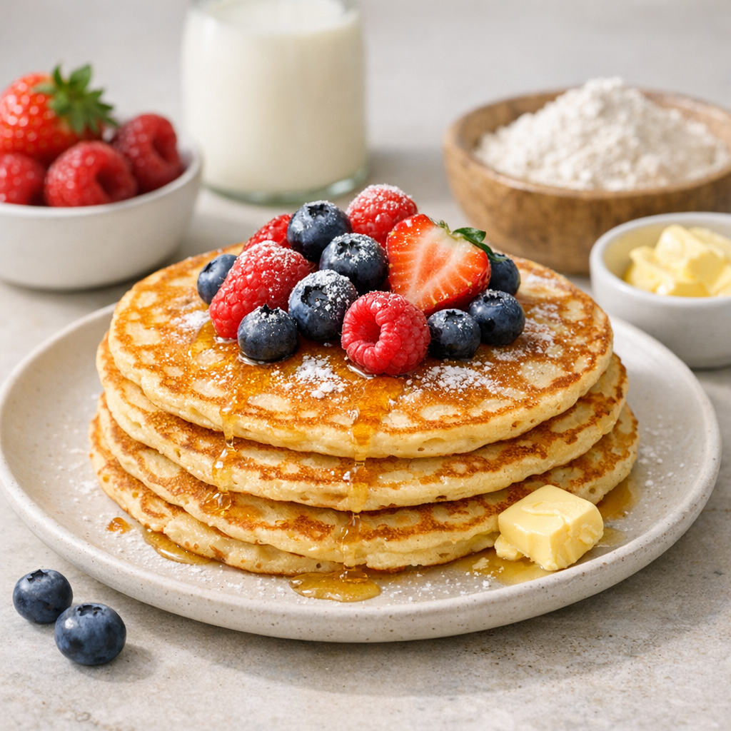 Deze Hollandse pannenkoeken zijn heerlijk luchtig en eenvoudig te maken met glutenvrije bloem en lactosevrije melk. Ideaal voor ontbijt of lunch, en lekker met zowel zoet als hartig beleg. Het beslag maak je snel en gemakkelijk met een paar basisingrediënten, en de pannenkoeken bak je goudbruin in lactosevrije boter.