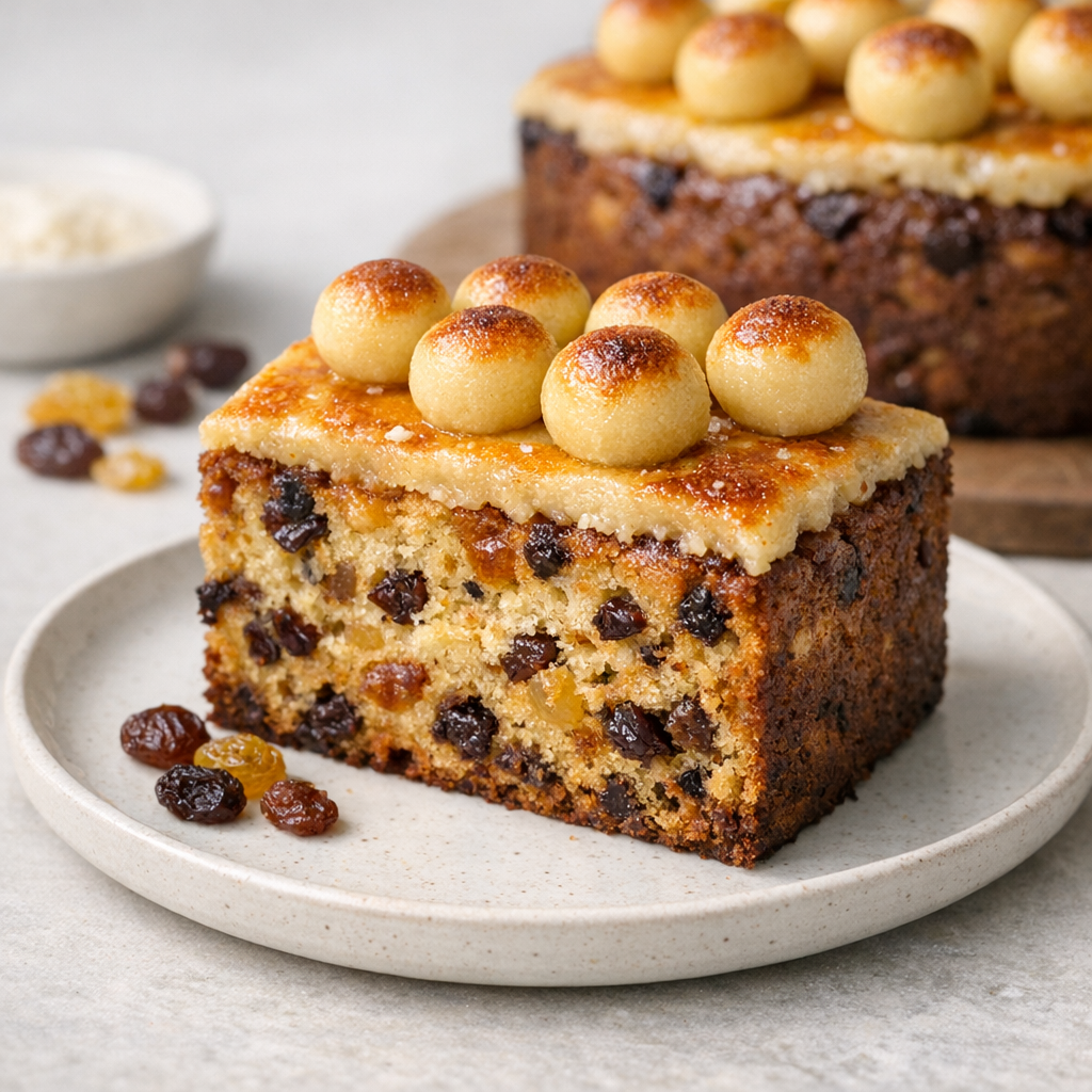Deze glutenvrije simnel cake is een zachte en smaakvolle feestcake met amandel en gedroogd fruit. Om het recept lactosevrij te maken, kan plantaardige boter worden gebruikt in plaats van gewone boter. Een haalbare optie om een traditioneel cakegerecht te serveren zonder gluten.