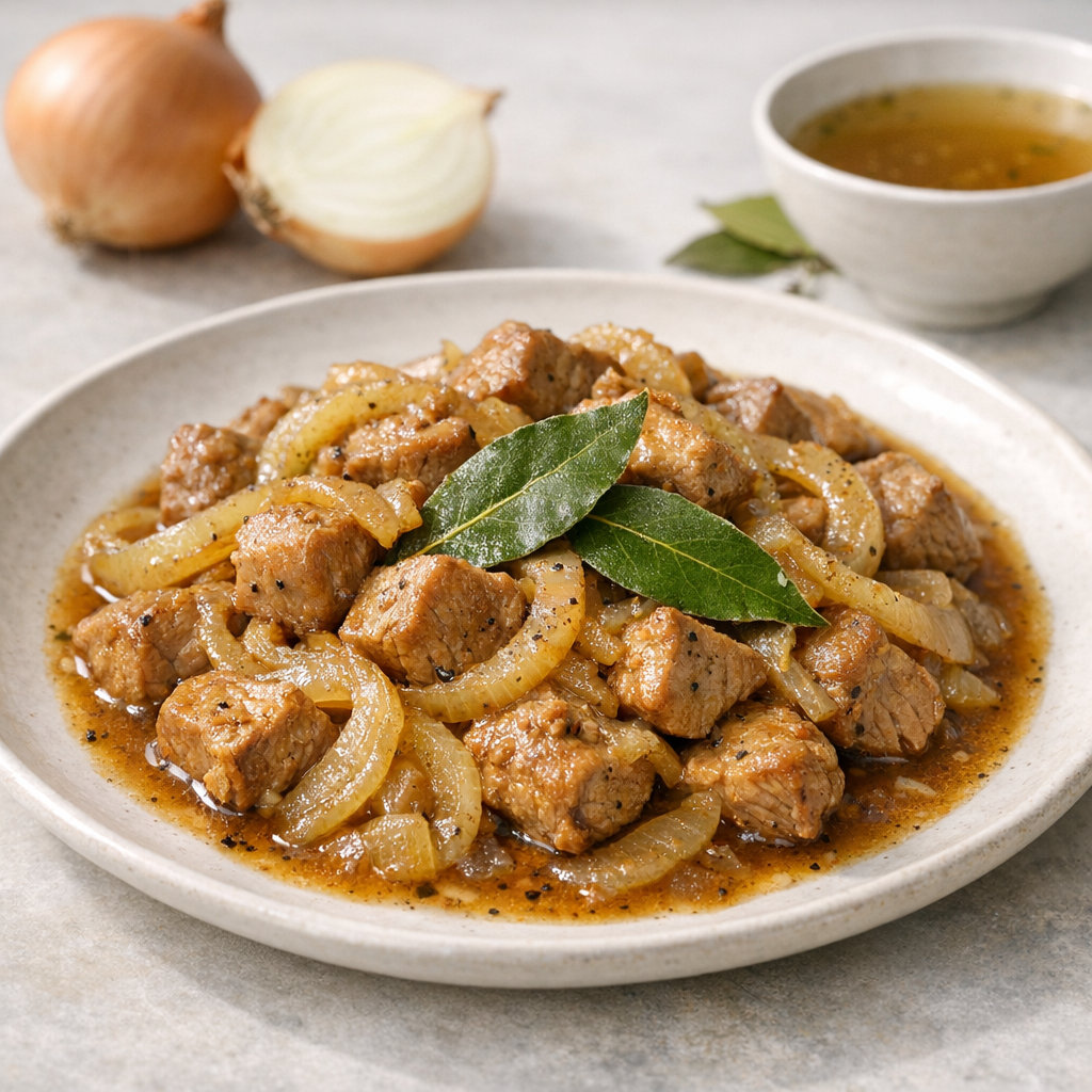 Een klassieke Nederlandse stoofpot met mals varkensvlees, zachte uien en een subtiele lauriergeur. Dit hartverwarmende gerecht is eenvoudig te maken en ideaal voor een rustige maaltijd. De bereiding is volledig glutenvrij en lactosevrij.
