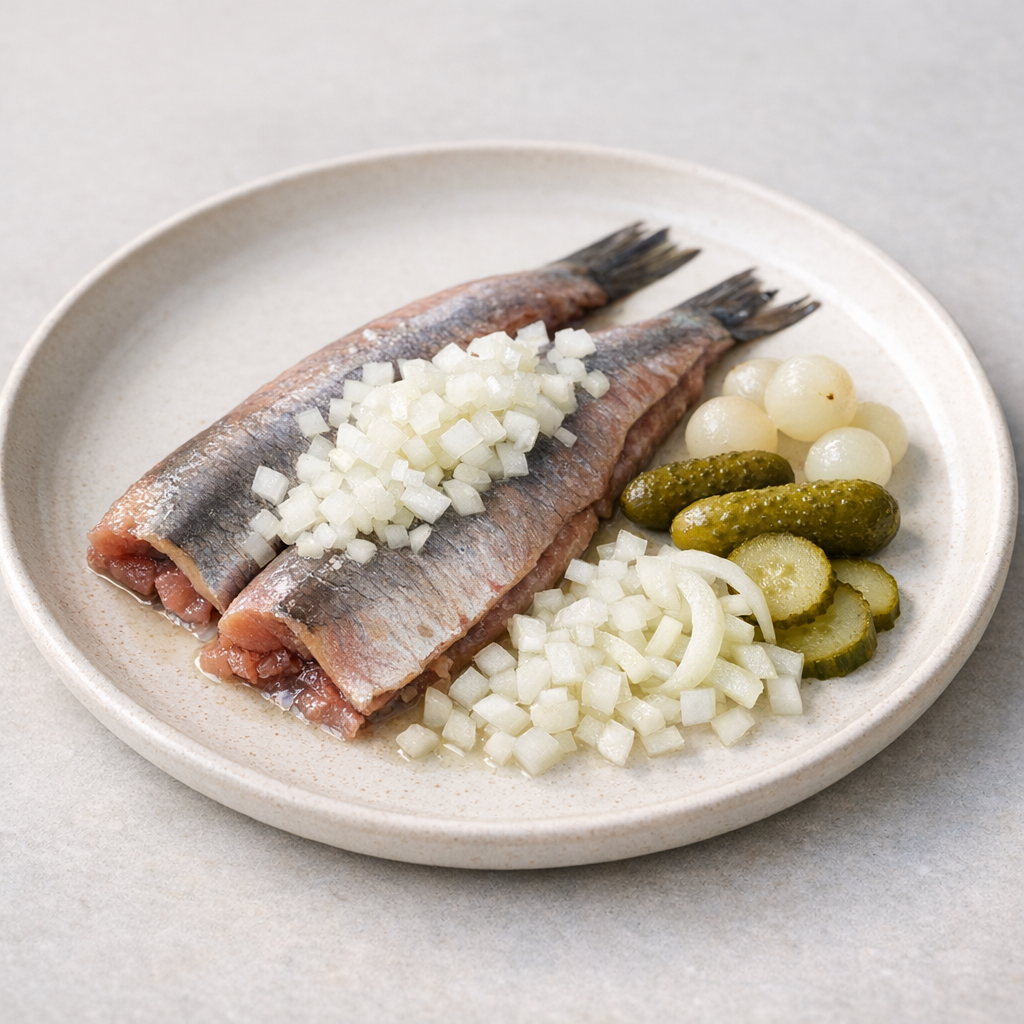 - 1 stuk Hollandse nieuwe haring (ongeveer 100-120 gram)