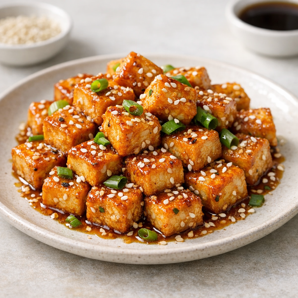 Knapperige tofu uit de airfryer met een zoete, pittige honing-knoflooksaus geeft een fijne balans tussen hartig en fris. Je hebt het snel en zonder stress op tafel.