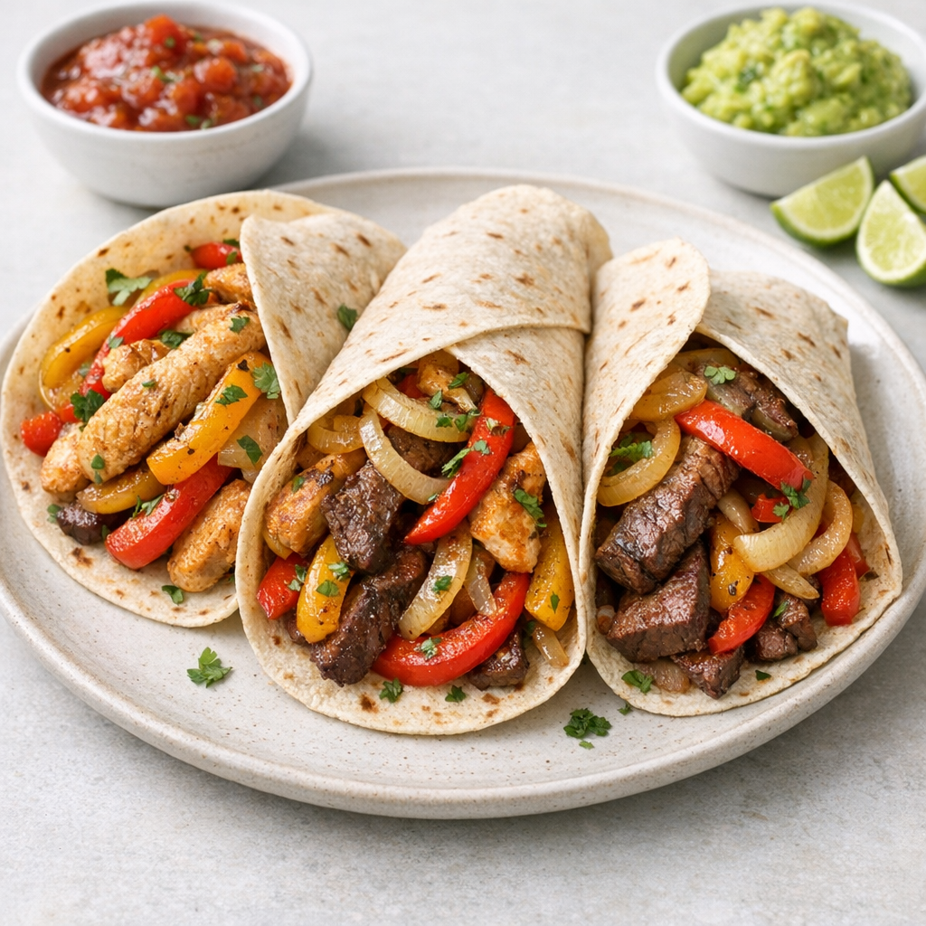Deze fajitas combineer je met kip, steak, geroosterde paprika’s en uien. Alles samen geeft een hartige maaltijd met veel smaak en verschillende structuren.