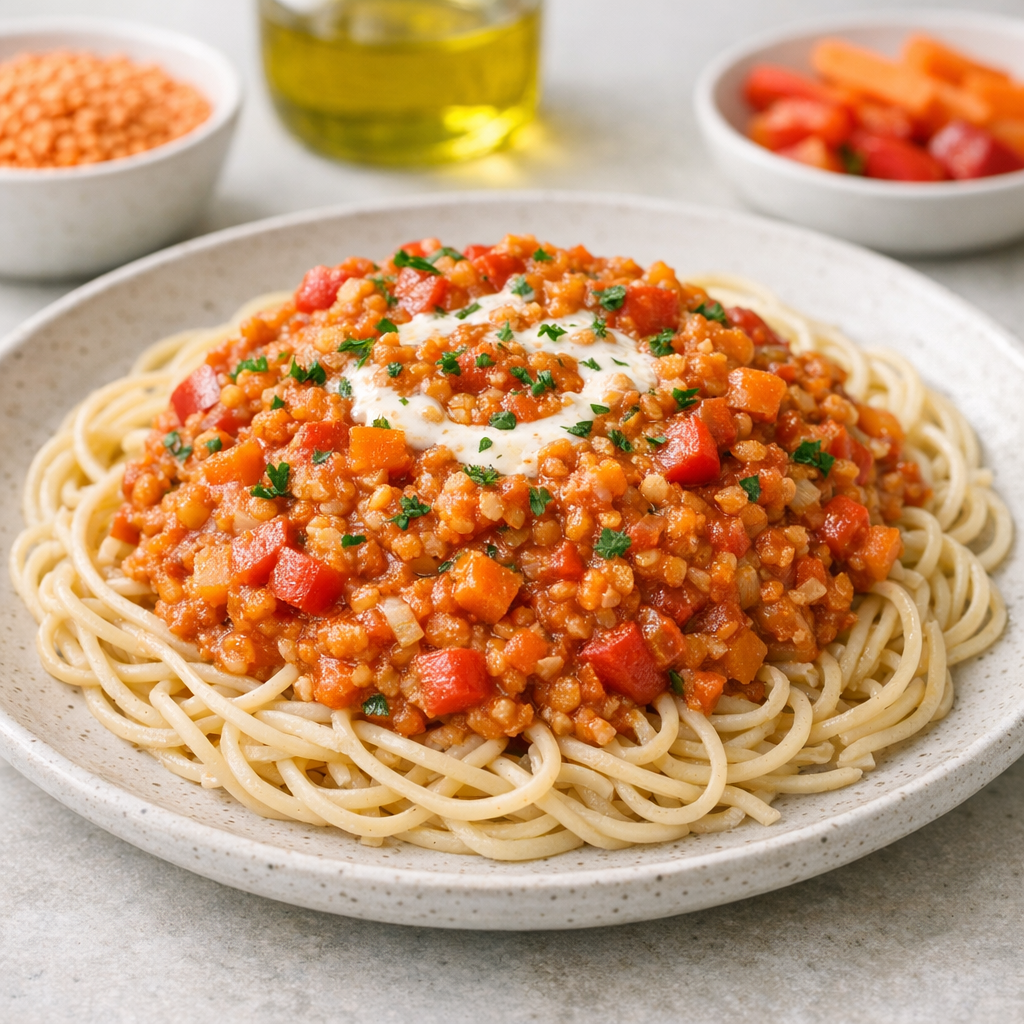 Rode linzen bolognese met groenten