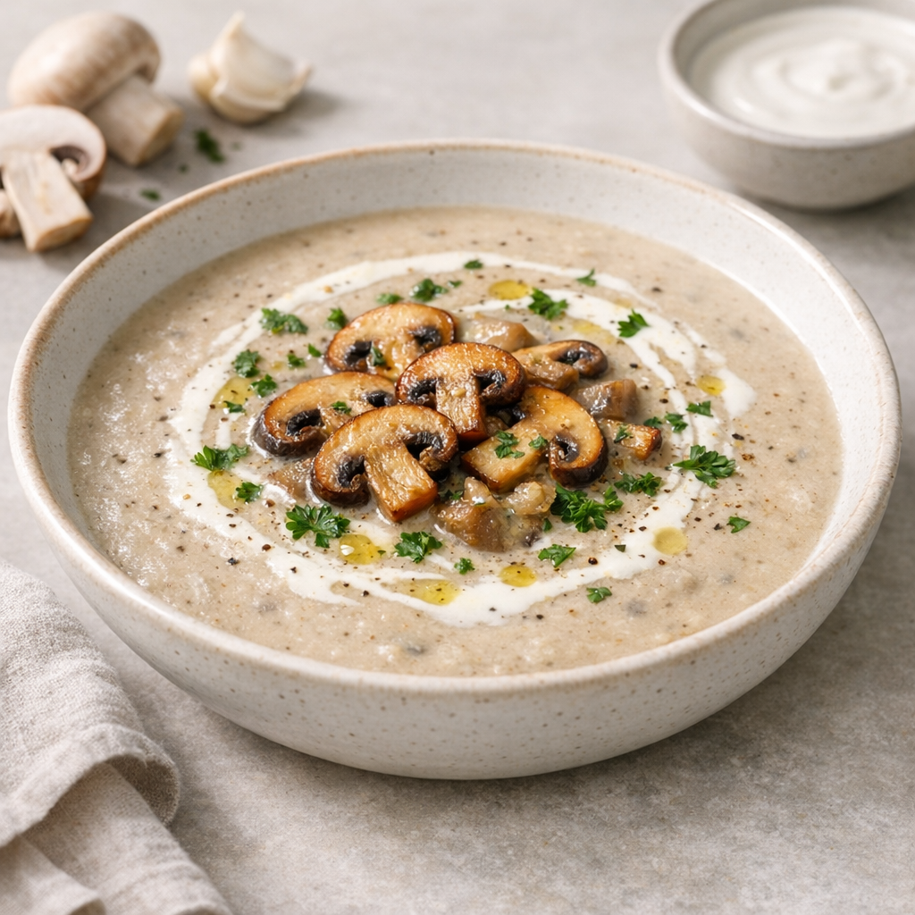 Deze romige champignonsoep is een rustgevende keuze voor een lichte lunch of voorgerecht. Het recept is glutenvrij en kan lactosevrij gemaakt worden door plantaardige room te gebruiken. De soep bevat praktische ingrediënten die de aardse smaak goed naar voren brengen.