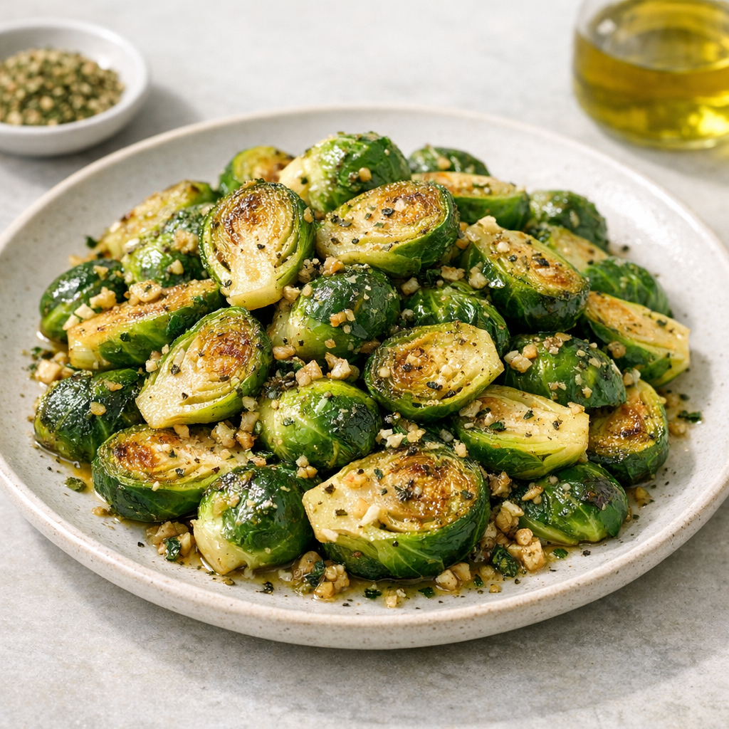 Dit eenvoudige gerecht combineert knapperige spruitjes met een aromatische olie van knoflook en oregano. Het is glutenvrij en lactosevrij en vraagt weinig voorbereiding. Het is een smakelijke en geruststellende manier om groenten op tafel te zetten zonder ingewikkelde technieken.