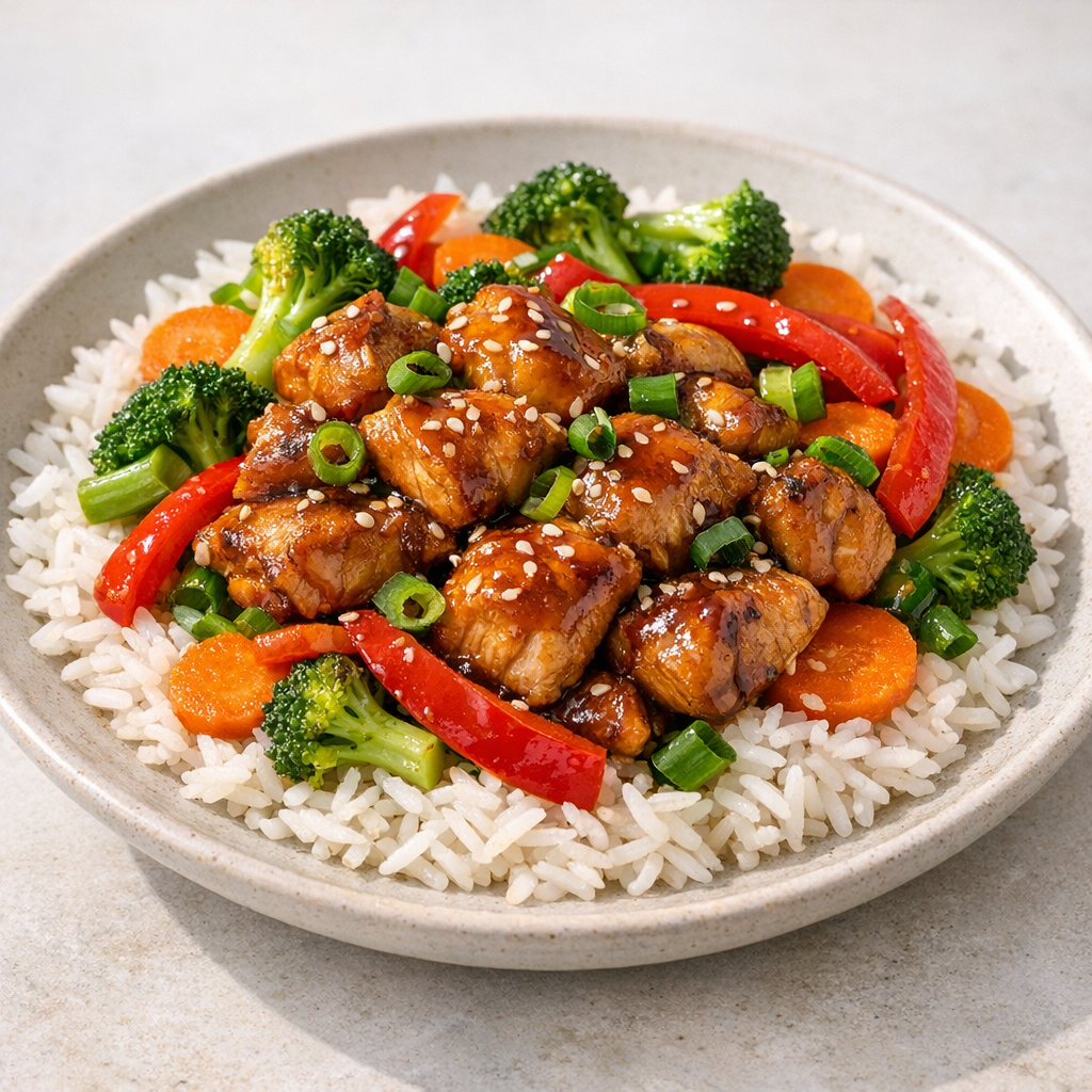 Krokante kip met teriyakisaus en verse groenten op rijst geeft een volle smaak en stevige bite. Met duidelijke stappen zet je snel een voedzame maaltijd.