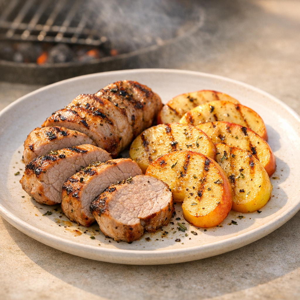 - Serveer de varkenshaas met de gegrilde appels.