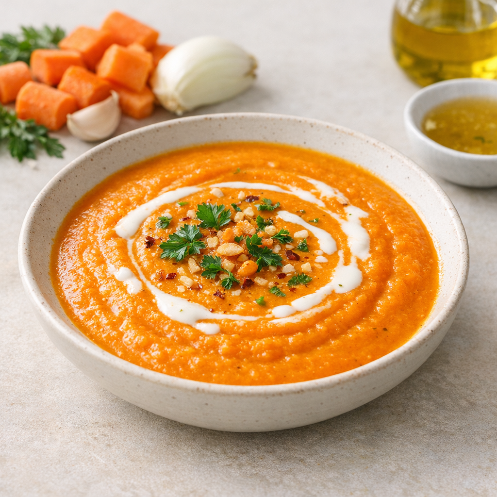 Deze wortelsoep is zacht en licht zoet van smaak. Je bereidt de soep eenvoudig, zonder veel ingrediënten of gedoe. Heerlijk als lichte maaltijd.